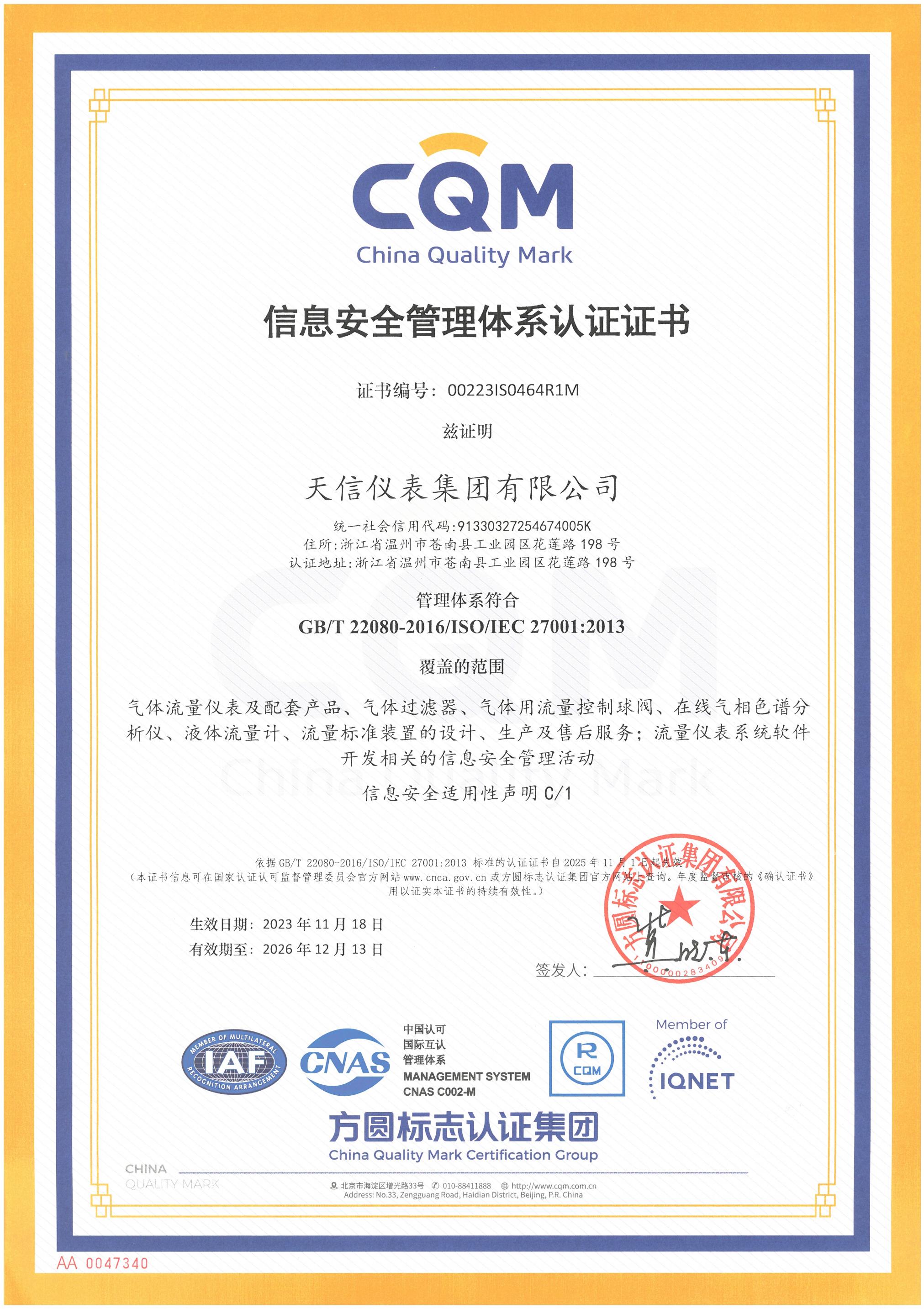 天信儀表集團有限公司創建于1995年,注冊資金1.28億元,年納稅超1.2億元,系國內流量儀表和應用系統解決方案的專業服務商。我公司是國家火炬計劃重點高新技術企業、國家863計劃項目承擔單位,搭建省數字化能源計量重點企業研究院、省級企業技術中心、CNAS認可實驗室等研發平臺,獲全國五一勞動獎狀、國家級專精特新重點“小巨人”企業、省級智能工廠、省級綠色低碳工廠、省級文明單位、市長質量獎等榮譽,以硬核實力在流量儀表與燃氣應用領域深耕突破 。