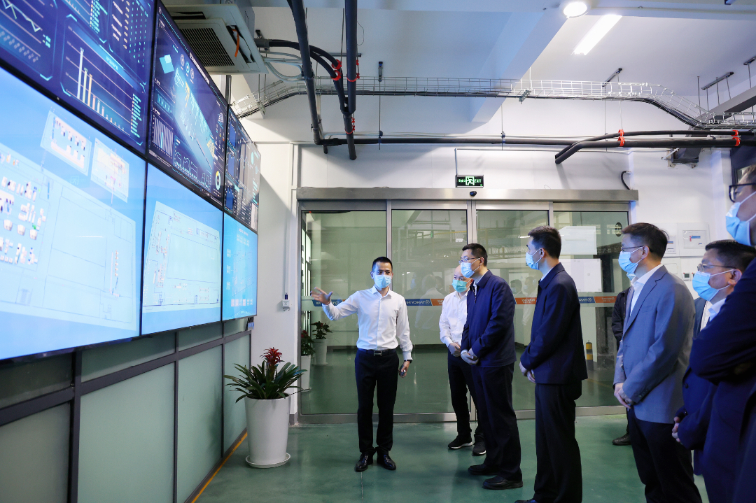 隨后,盧副省長一行來到天信智能制造車間,在生產數據平臺中心,李孝評總經理結合實時動態畫面,為調研組介紹了生產進度、生產產量、關鍵質量等數據。